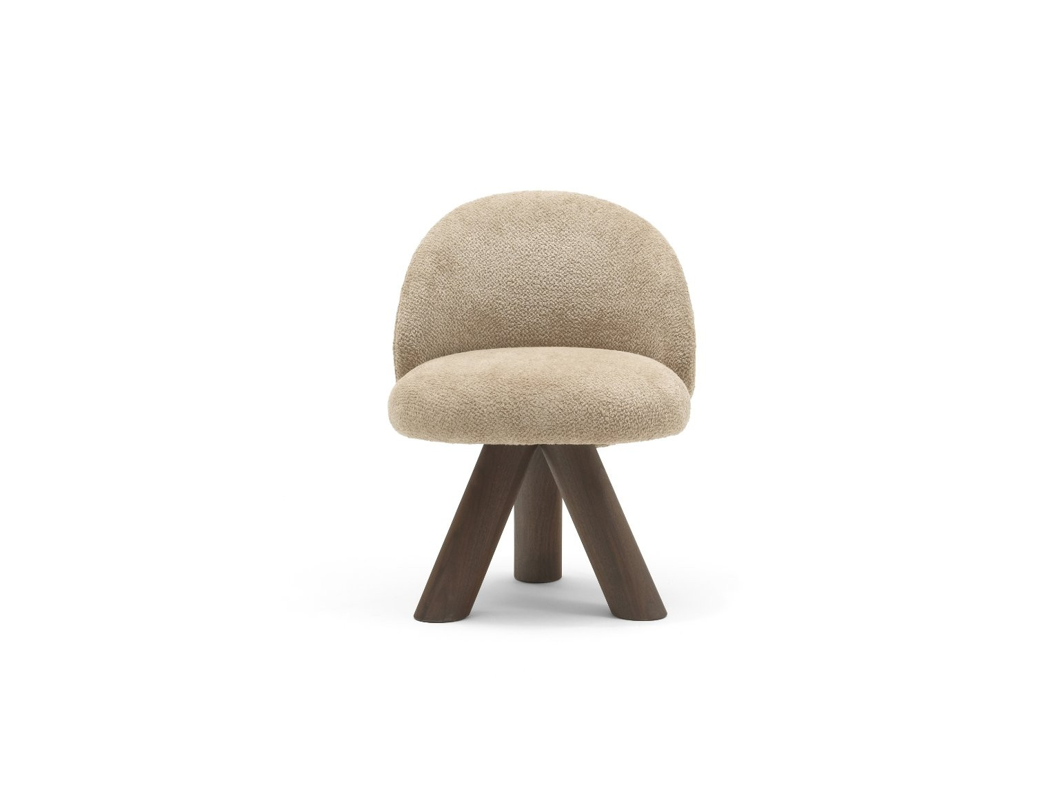 Experience the whimsical charm of the BOO Armchair, featuring three cylindrical wooden legs and rounded, modern cushions for both seating and backrest. This chair is a delightful fusion of fun and contemporary design, promising comfort and style in equal measure.