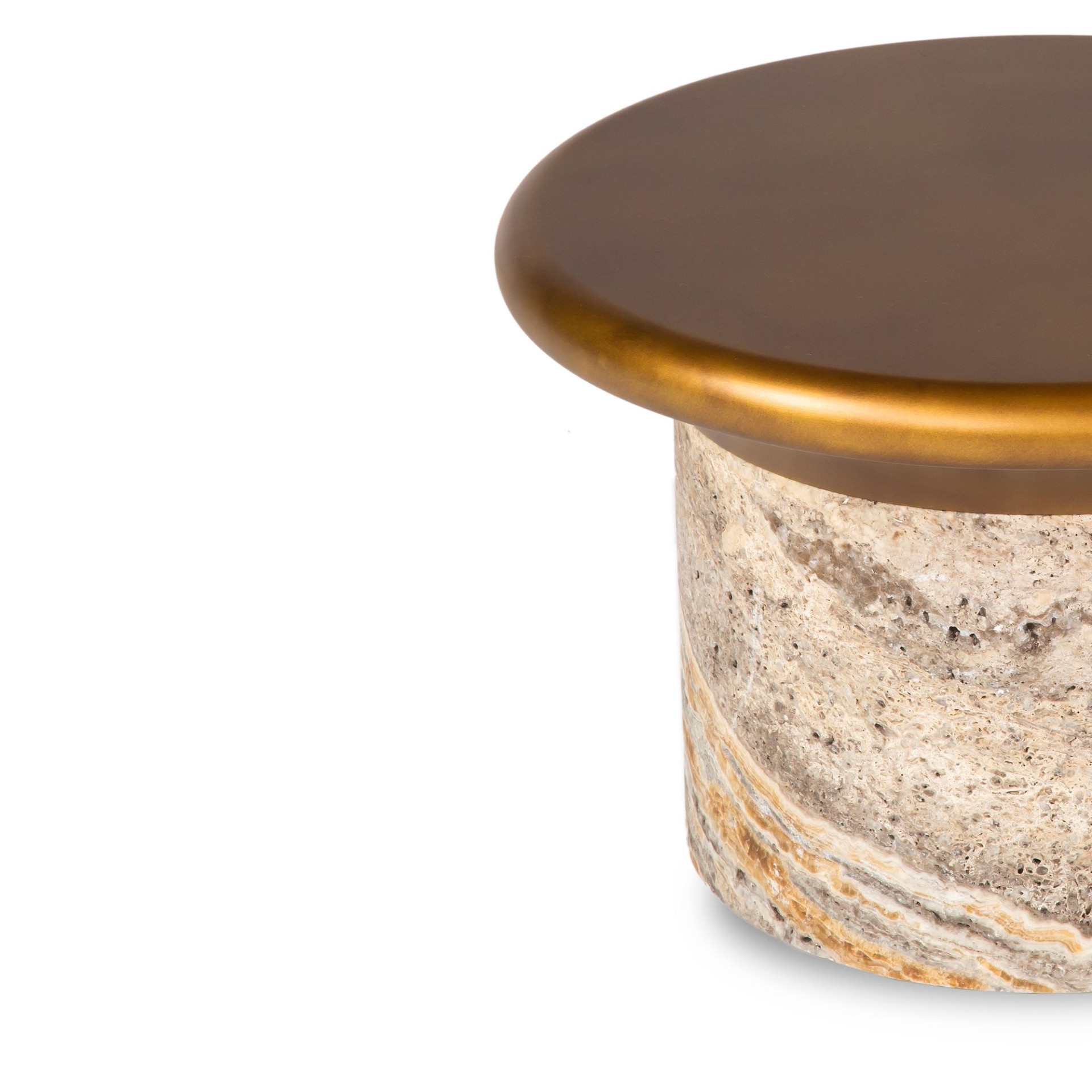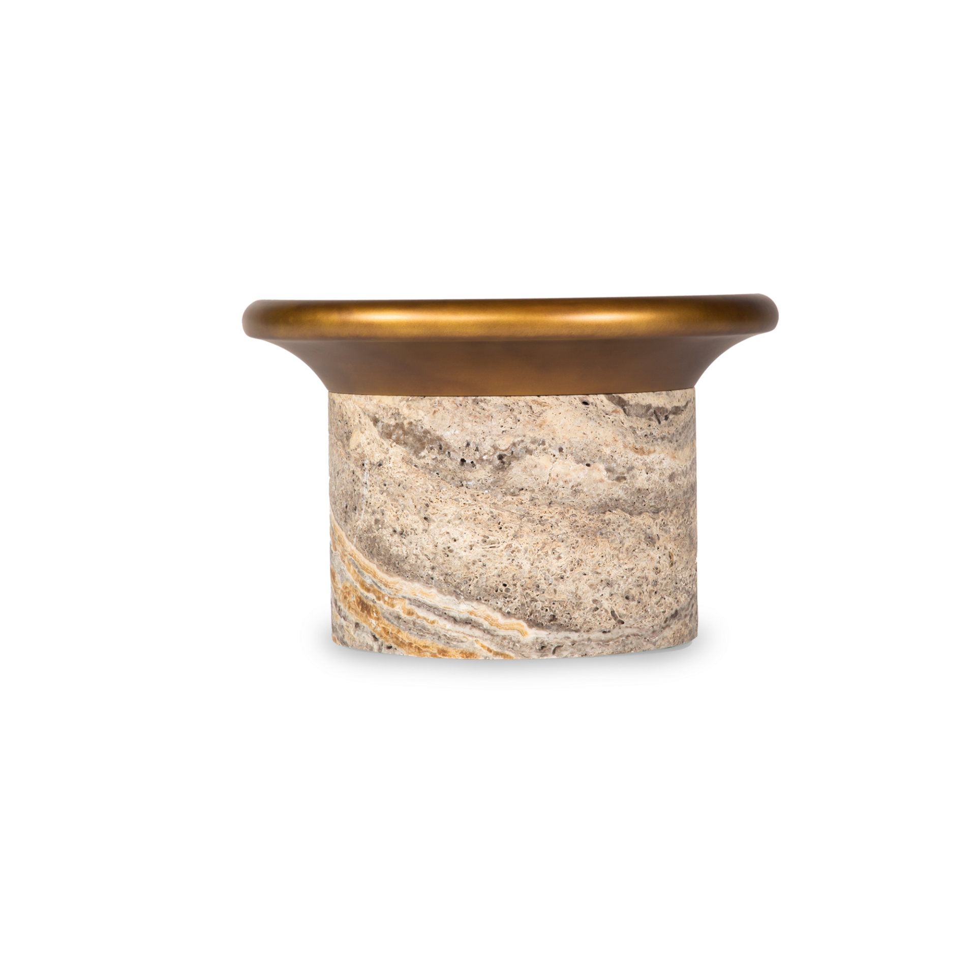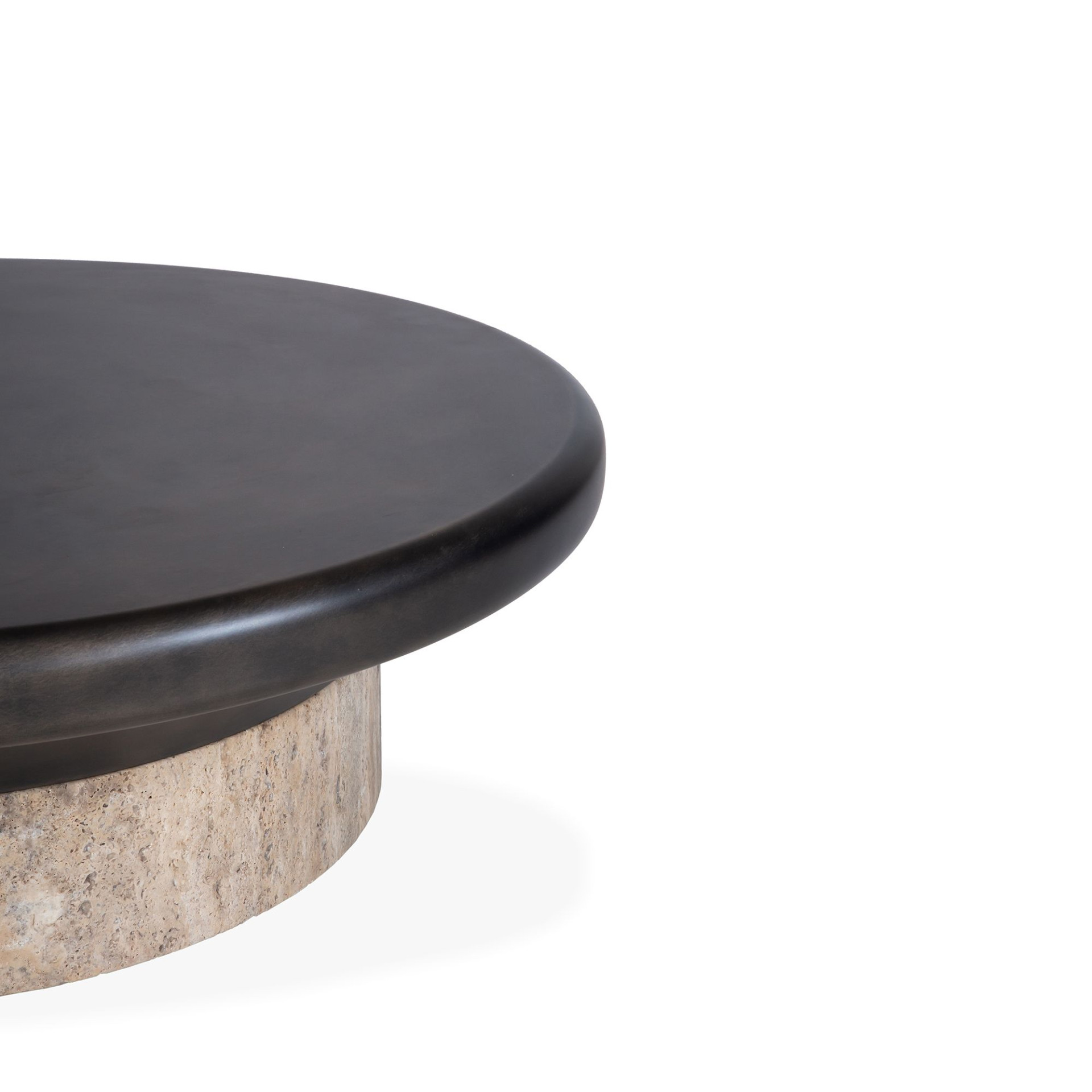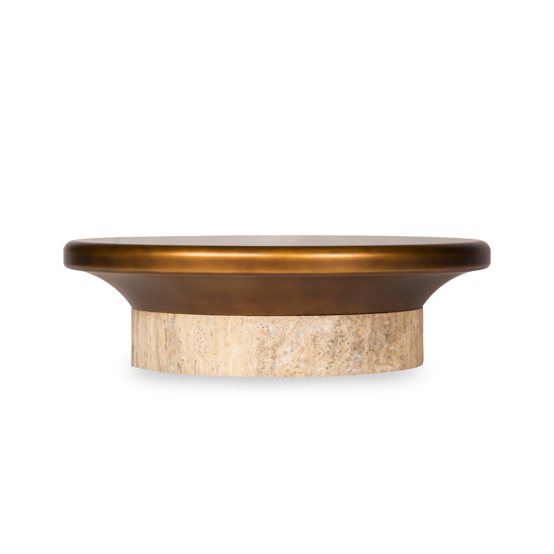 Der Suspence Couchtisch mit seinem Säulenfuß und den raffinierten Marmordetails verleiht jedem Raum, den er betritt, eine anspruchsvolle Ästhetik.