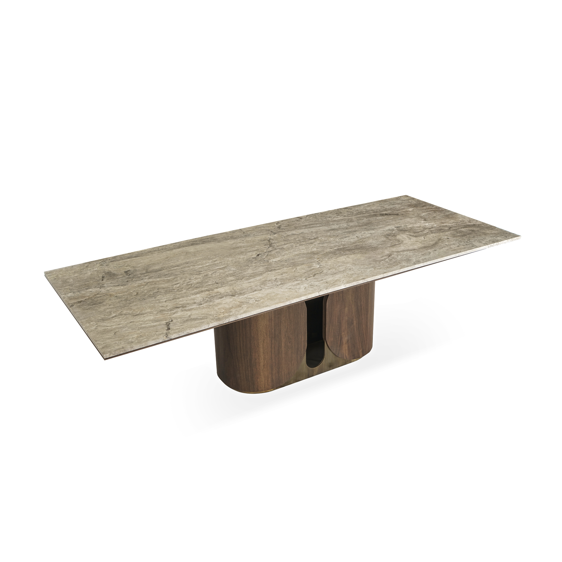 Der Tisch Horus, der aus Nussbaumholz und gealtertem Messing besteht, verbindet die unvergleichlichen Formen der Natur mit einem Designkonzept, das Ihnen eigen ist.
