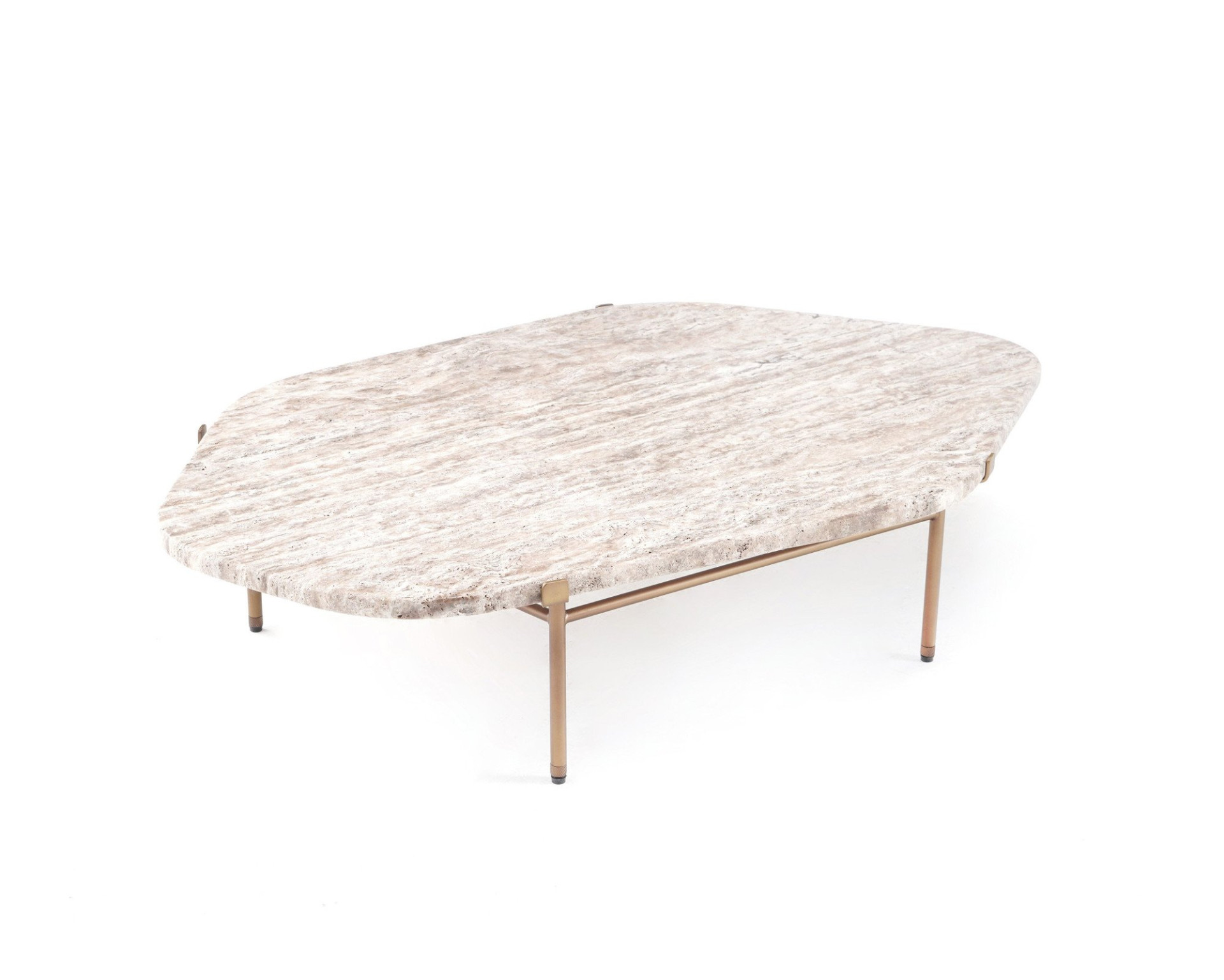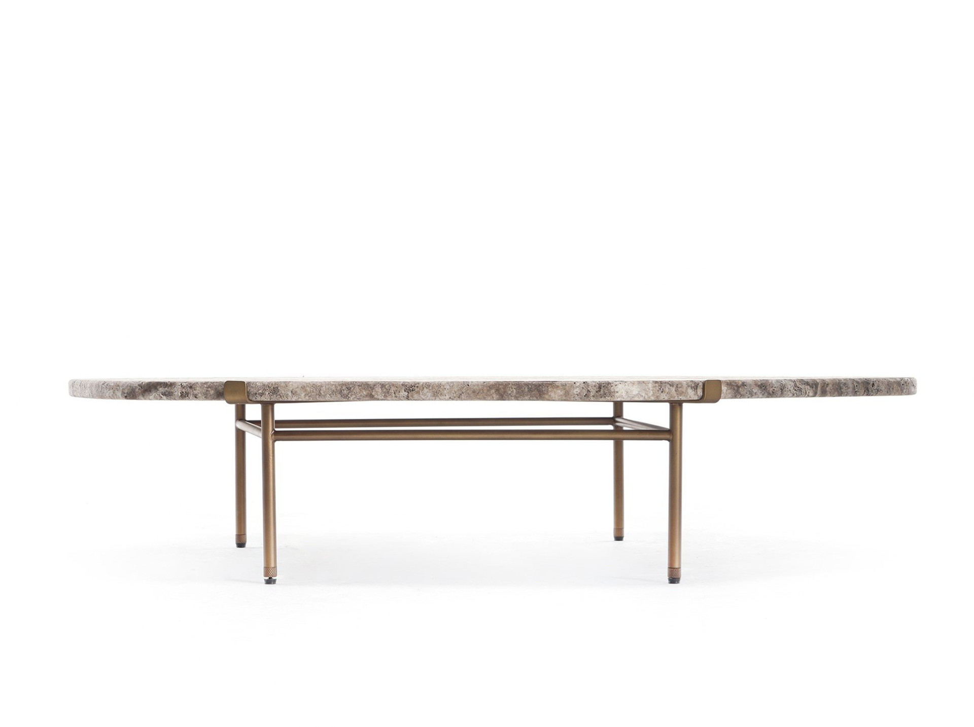 Mit einer amorphen Steinplatte bedeckt, bestimmt der Island Coffee Table je nach Art des verwendeten Natursteins die Stimmung des Ambientes. Mit Travertin fügt er sich anmutig in jede Einrichtung ein, ohne aufzufallen. Mit Marmor wird er zum dominierenden Element im Raum. Der Leichtmetallsockel, der von der Fassung eines Solitärrings inspiriert ist, hebt die Steinplatte sanft an, so dass ein schwebender Effekt entsteht. Eine Vielzahl von Marmor- und Metallfarben sorgen für den nötigen Akzent in jedem Wohnzimmer.