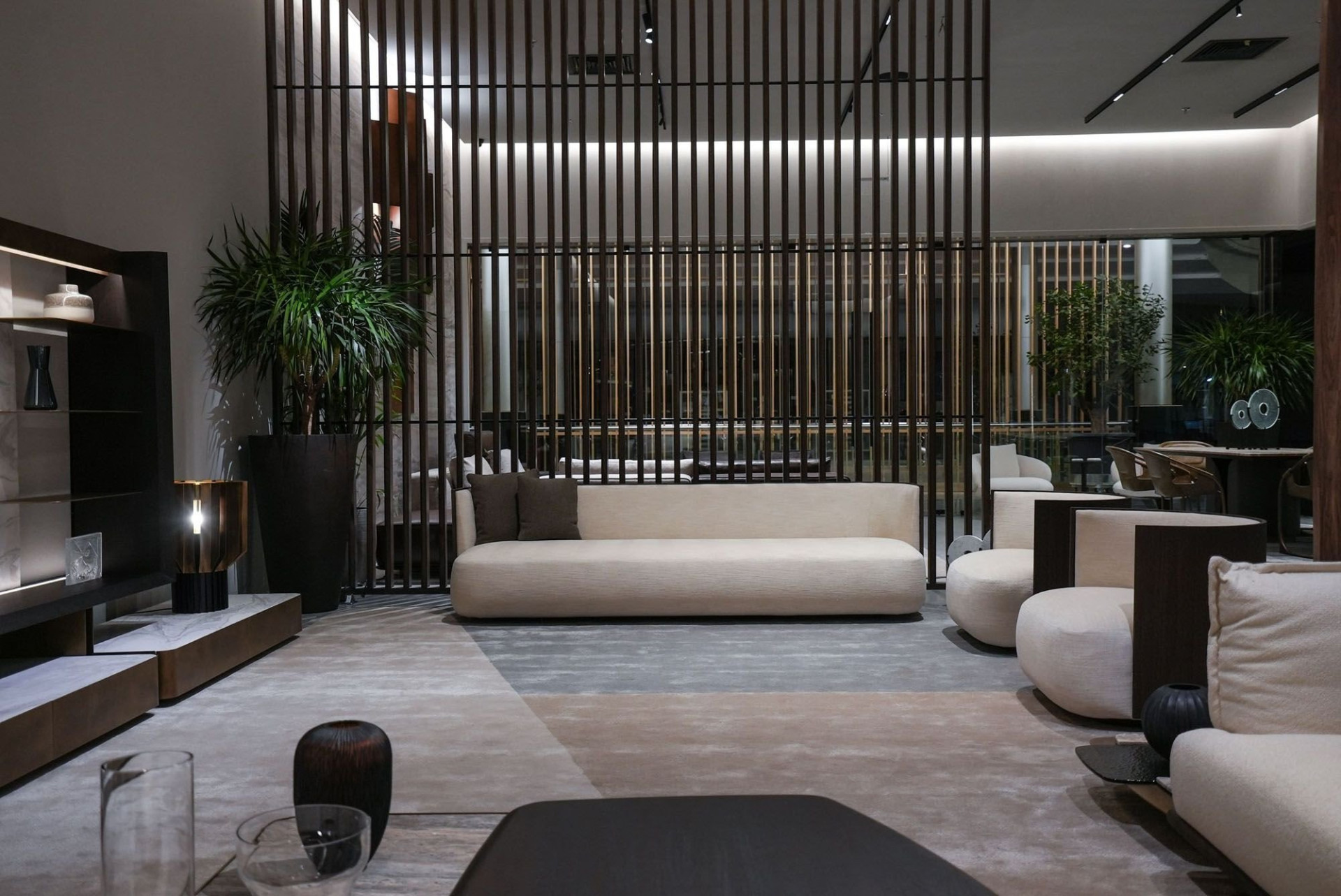 Das Marsilia Sofa ist ein echter Blickfang mit seinem geschwungenen, verführerischen Aussehen, das durch die umklammernden Holzteile der Rückenlehne perfekt akzentuiert wird. Es zieht die Aufmerksamkeit mit seinen feinen, ausgearbeiteten Details auf sich, die im Kontrast zu seiner kühnen, monumentalen Haltung stehen. Das Sofa steht leicht erhöht auf einem runden Gestell und wirkt wie ein schwebendes Objekt. Ein zarter, von Kissen gestützter Polsterbezug puffert die unkonventionelle Holzlehne ab. Definiert durch großzügige Proportionen und gesellige, weiche und doch architektonische Qualitäten, funktioniert Marsilia Sofa bei Bedarf als Raumteiler und Orientierungselement in jedem öffentlichen oder privaten Raum. Als authentisches Statement und zeitloser Klassiker für jedes moderne Interieur ist der Marsilia Sessel die perfekte Ergänzung zum Sofa. Gemeinsam schaffen sie einen harmonischen, eleganten und funktionalen Raum, in dem Menschen zusammenkommen, um miteinander zu kommunizieren und zu wachsen. Er eignet sich für formelle Lounge-Bereiche, Büros und Großraumbüros. Die holzfurnierte Rückenlehne bietet zahlreiche Farboptionen, während die Polsterung neben Stoff auch in Leder und Nubuk erhältlich ist.