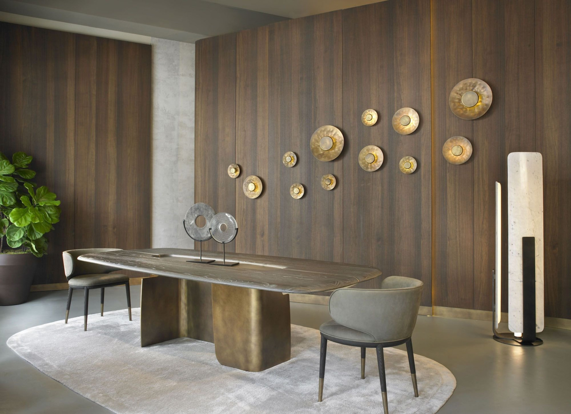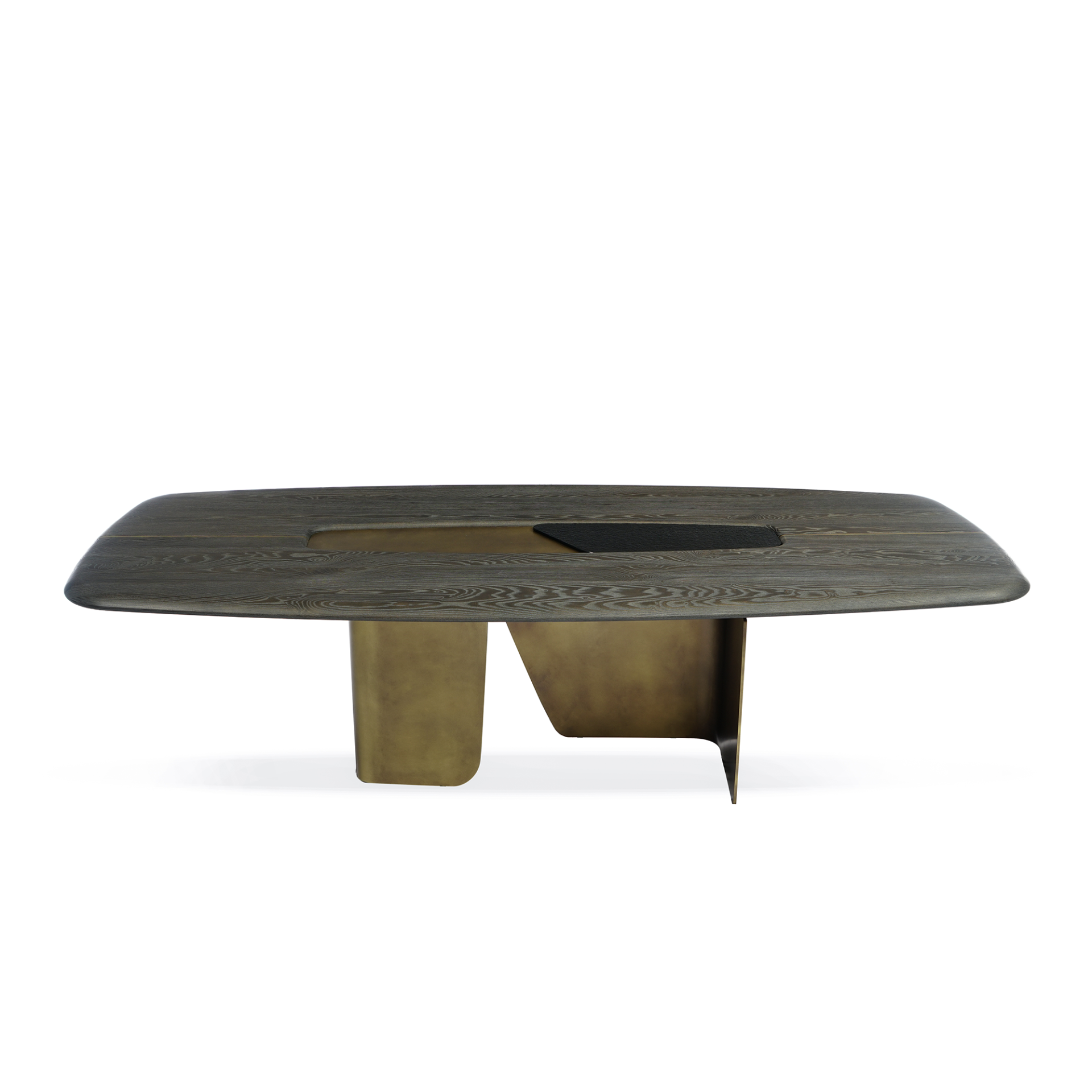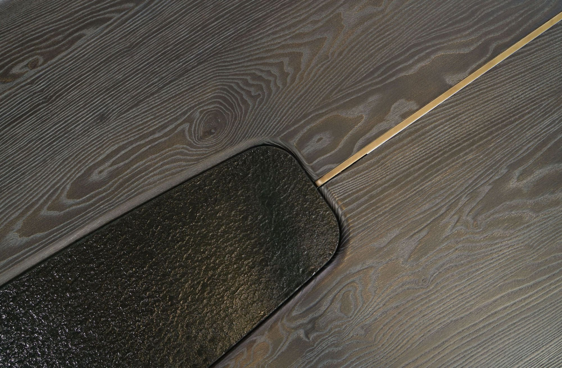 Ungewöhnliche Ideen verwandeln sich in originelle Entwürfe. Menhir besteht aus einer Kombination von dunklem massivem Eschenholz und Fusionsglas und hat den Anspruch, mit seinen außergewöhnlichen Linien eine stilistische Revolution in Ihren Wohnräumen auszulösen.