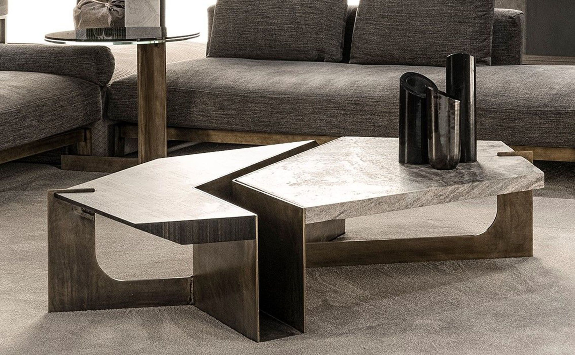Authentische Linien machen alles einzigartig. Stratos kombiniert Eukalyptusabdeckungen und gealtertes Messing mit Formen aus Travertinmarmor zu einer unvergleichlichen Harmonie, die in authentischen Linien zum Ausdruck kommt.