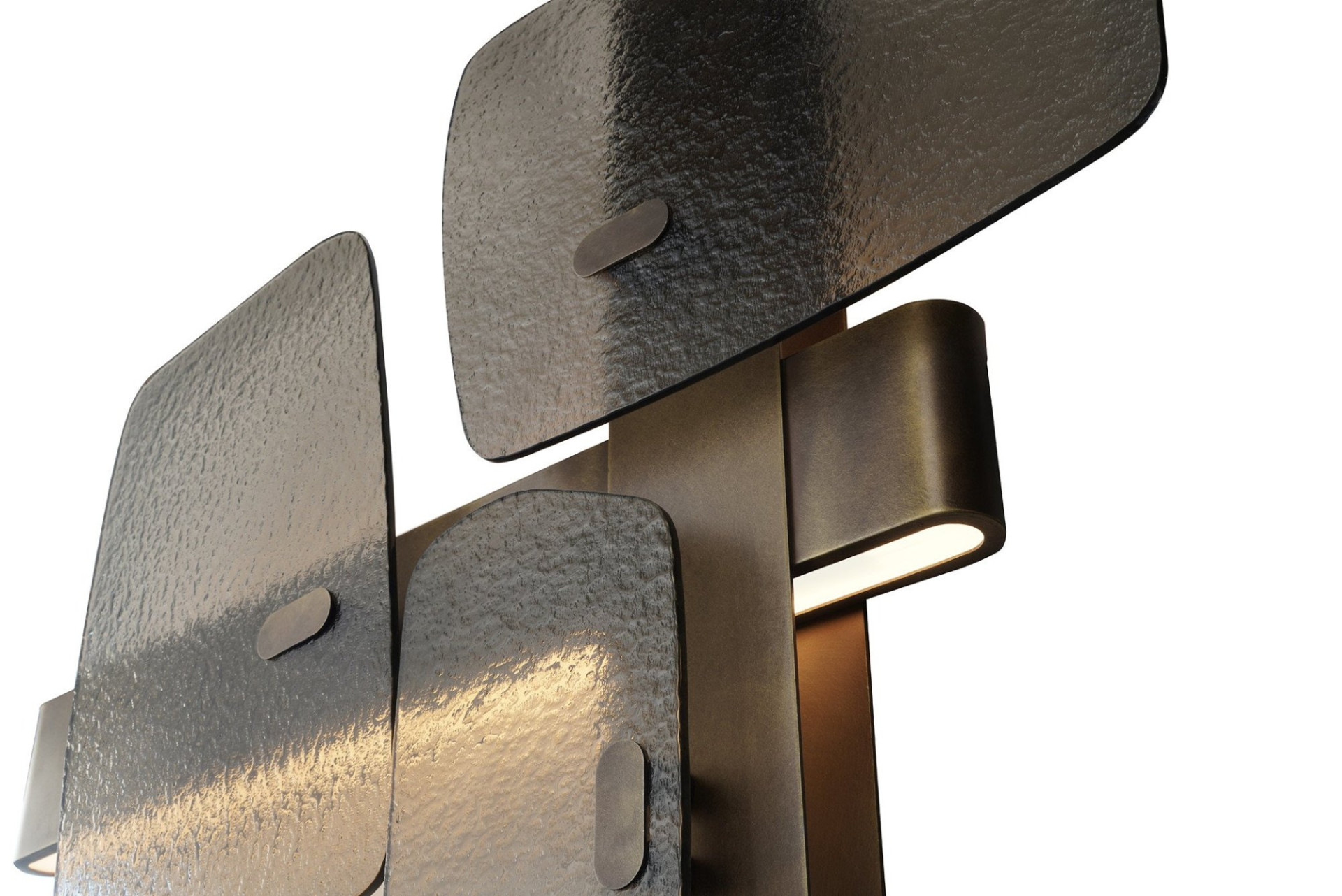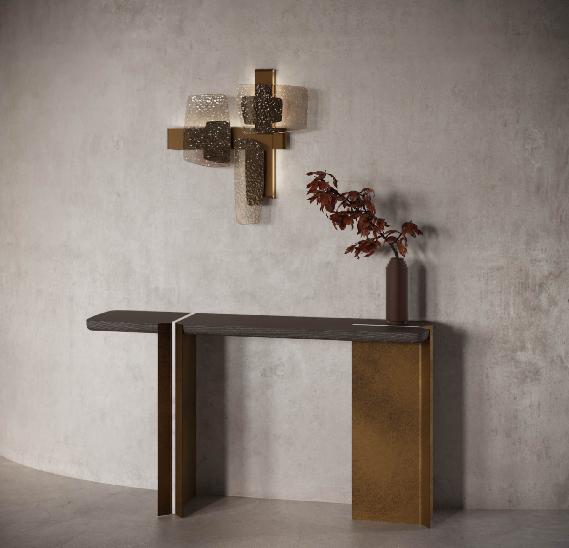 Außergewöhnliche Linien und Kreativität treffen in diesem Entwurf aufeinander. Die Kombination aus Fusionsglas und Metall wurde entwickelt, um die Raumarithmetik mit großem Vergnügen zu gestalten.