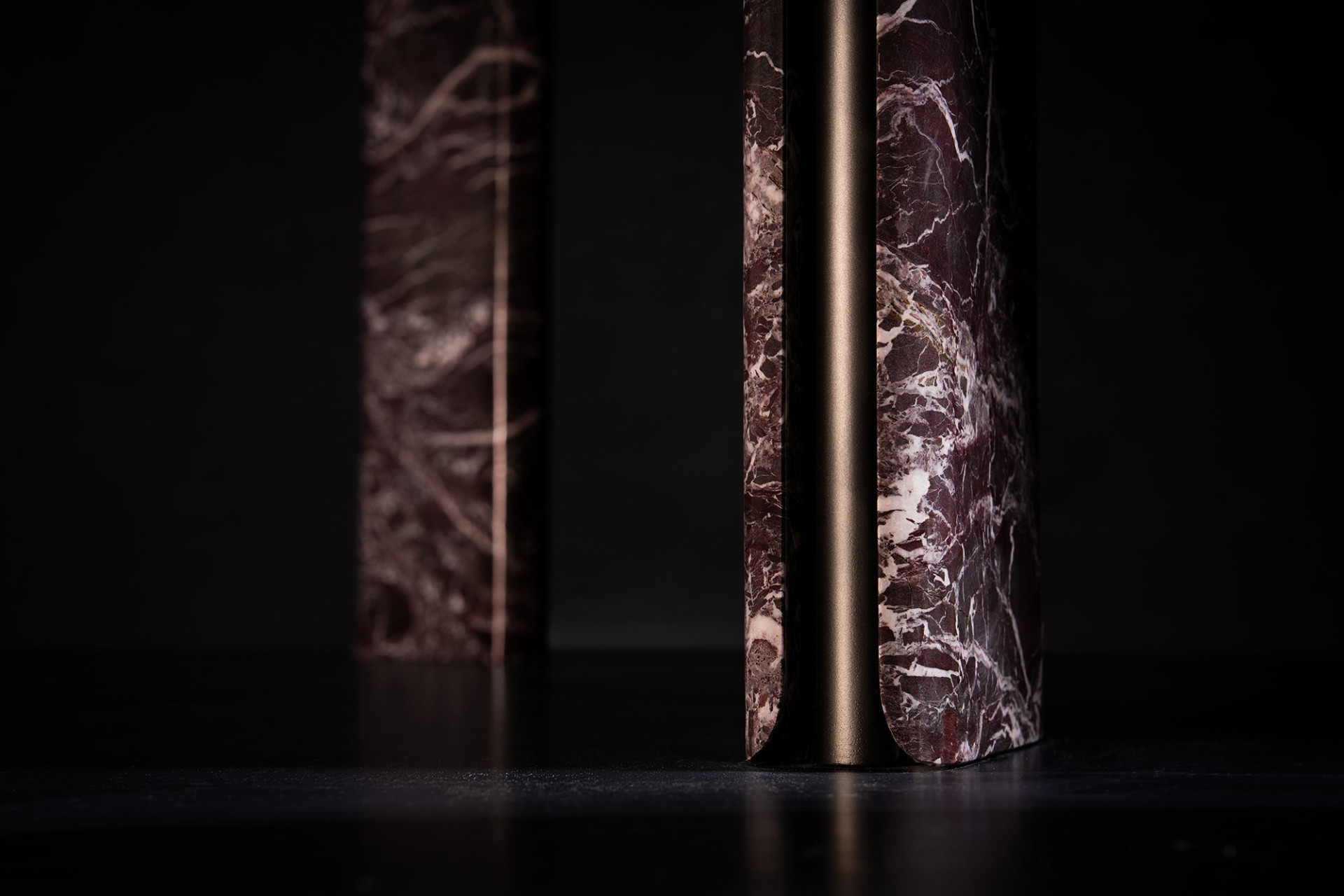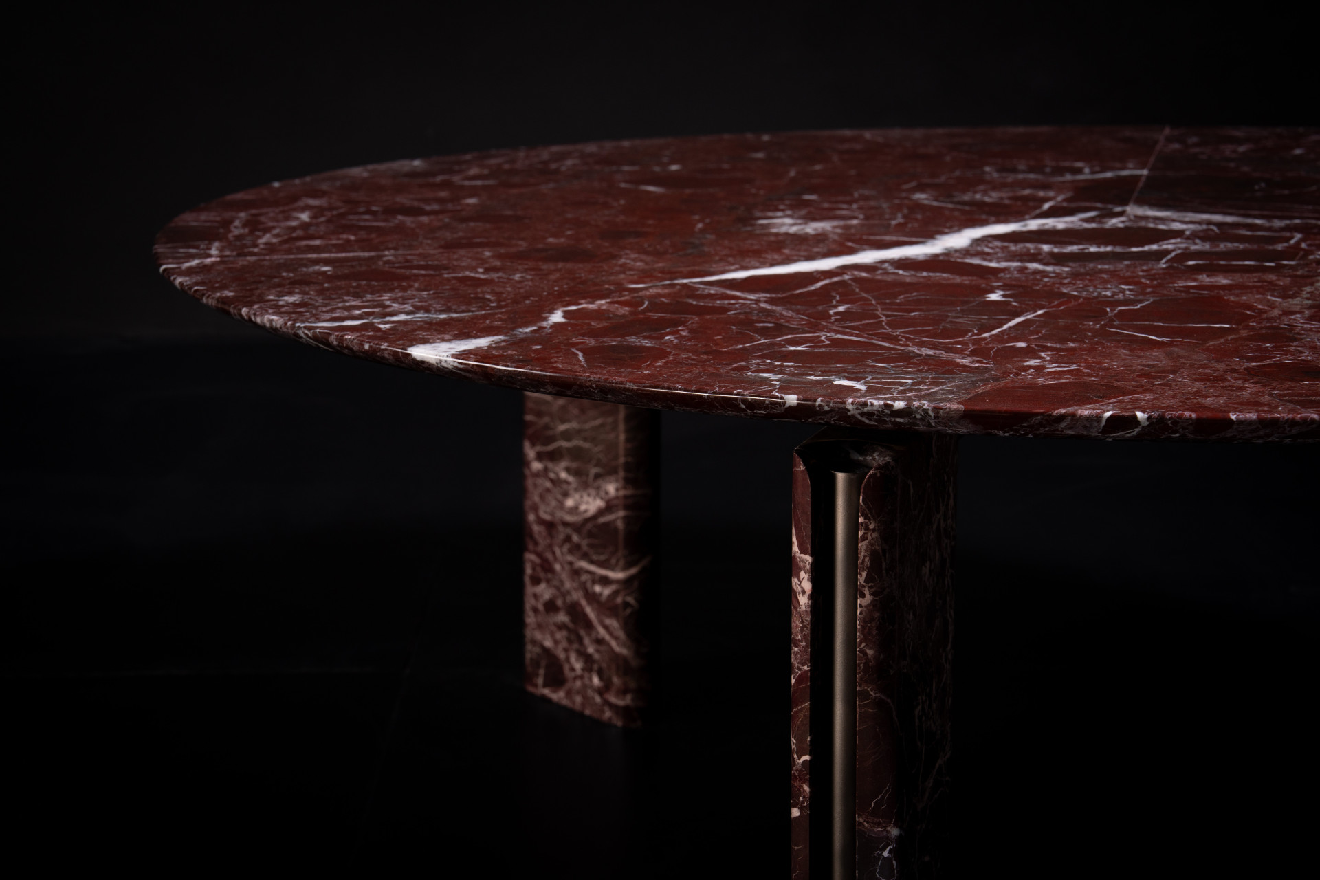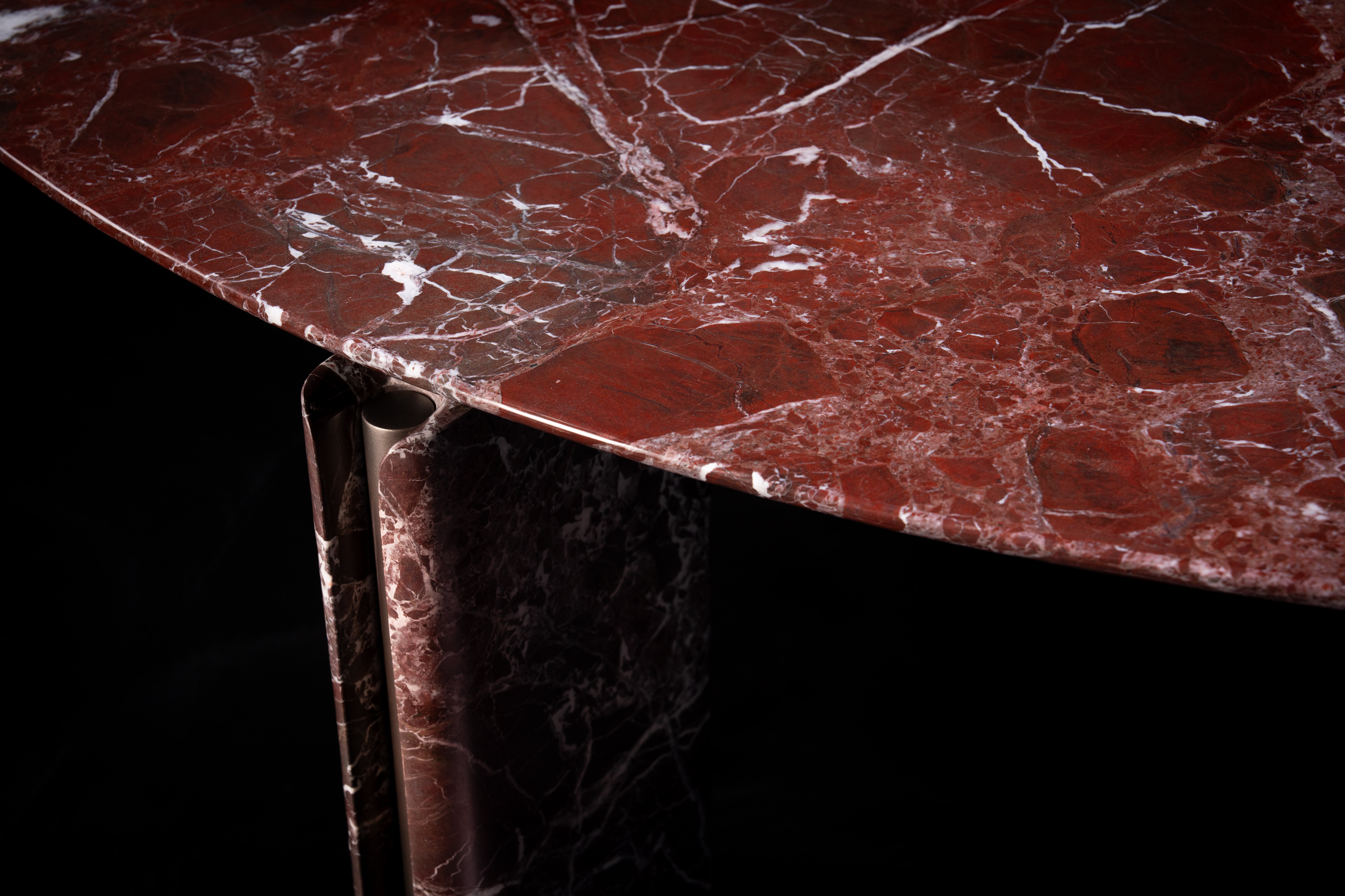 Aurum Table is a masterful expression of sculptural refinement and architectural clarity, seamlessly uniting pure geometry with the luxurious tactility of noble materials. The tabletop, available in both rectangular and rounded silhouettes, is offered in a curated selection of marble, lacquer, and solid wood—each surface distinguished by its nuanced veining or flawless finish. Visible metal profiles, rendered in elegant vertical lines, are not relegated to a supporting role but emerge as essential elements of the composition, imparting a sense of equilibrium and contemporary sophistication.