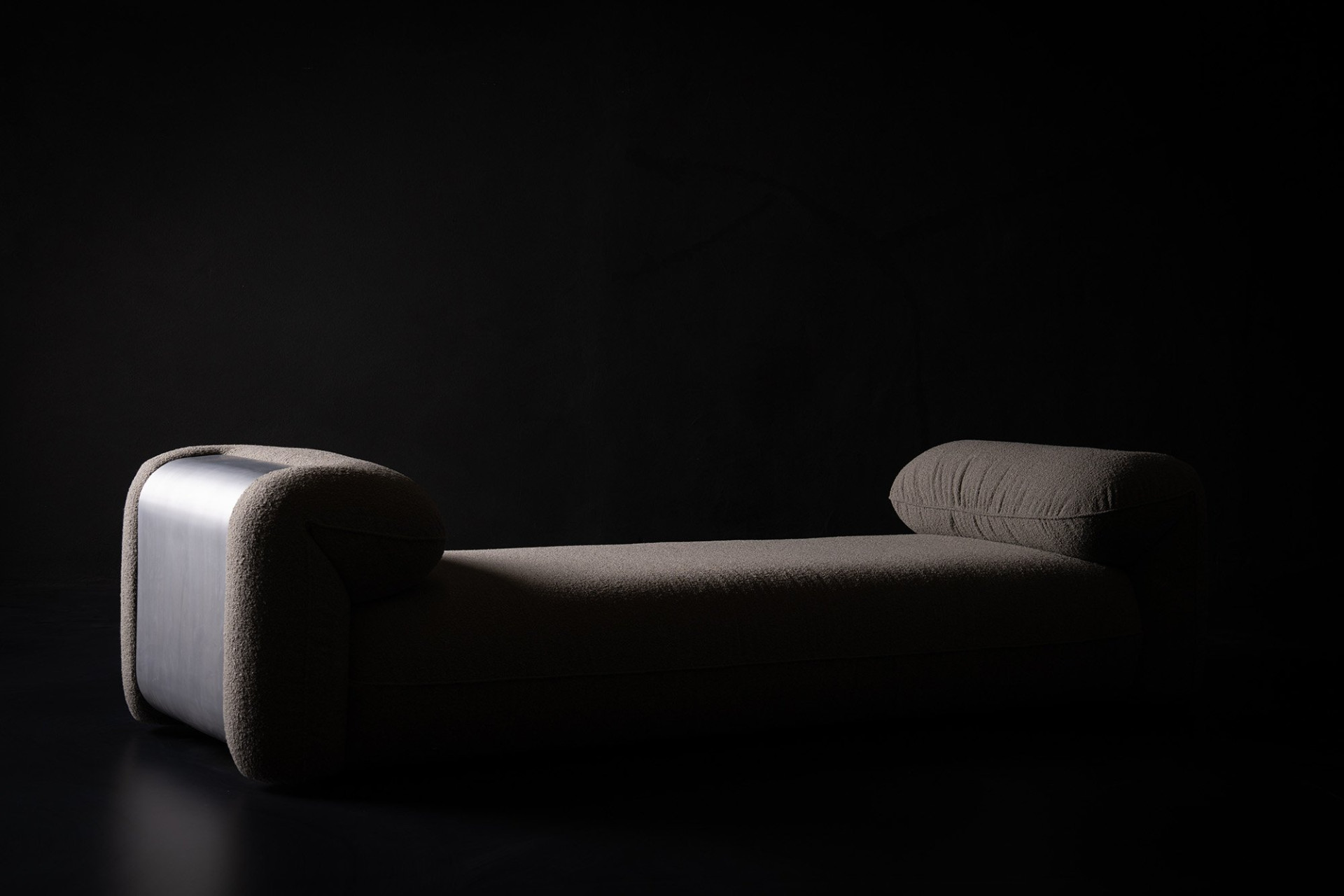 Lien Bench distills the sofa’s sculptural identity into a compact form with quiet presence and refined comfort.