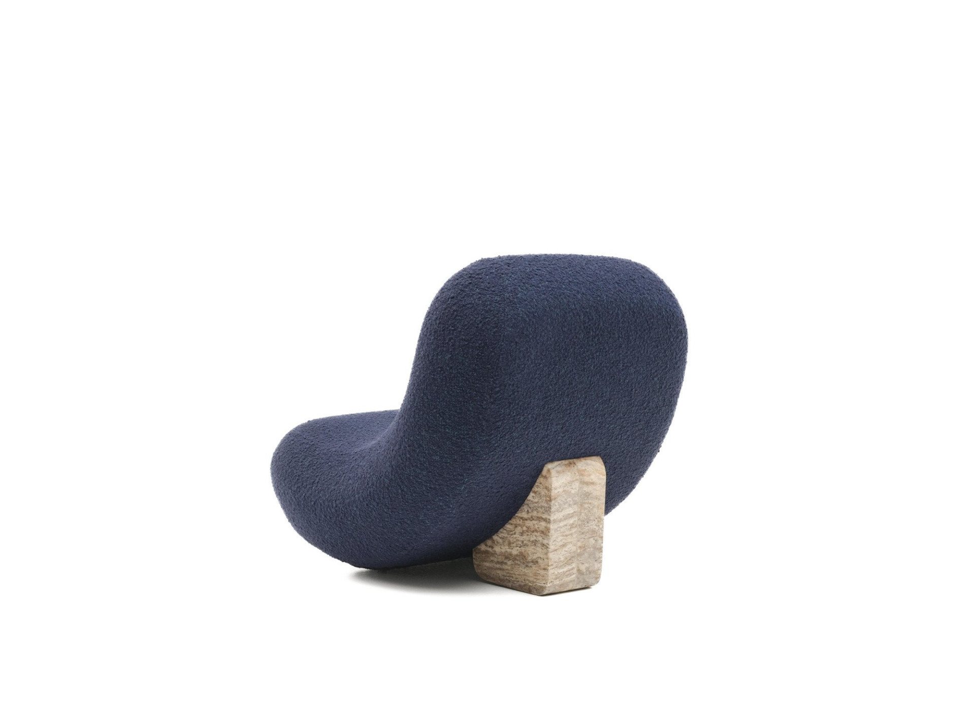 Nami Berjer, harekette yakalanmış bir duraklama hissi verir; kusursuz bir uyum içinde. Kumaşı yumuşak bir kıvrımla akarak hafiflik duygusu sunar. Traverten ayaklarla sabitlenen yapısı, konfor ile sanatı dengeler ve hem dinlenmeye hem de hayranlığa davet eder.