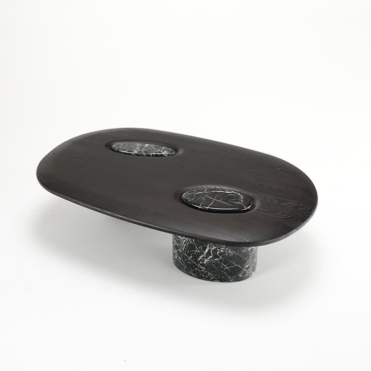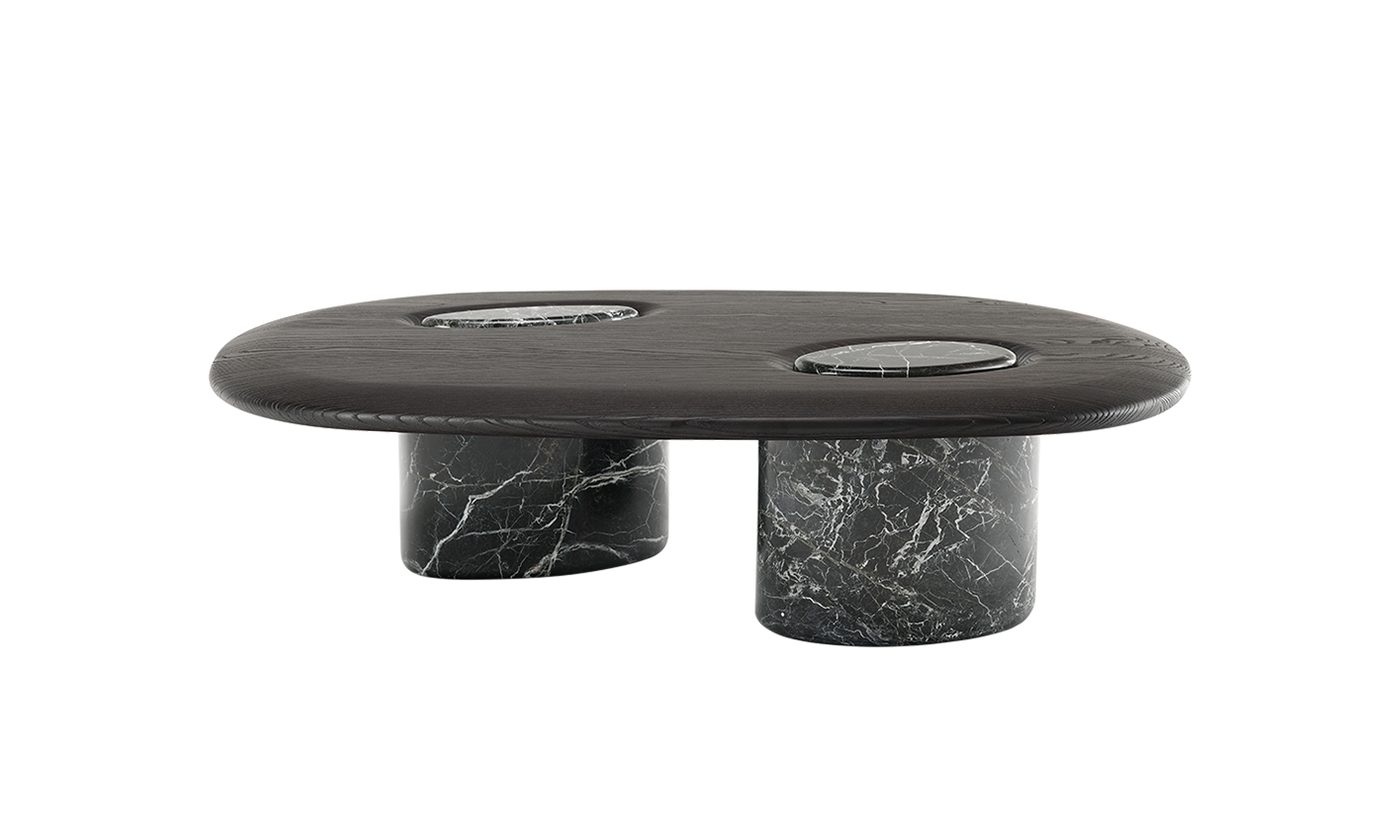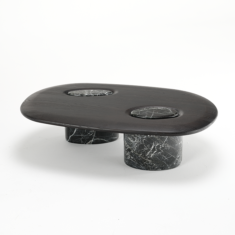 The table boasts two beautiful marble legs that serve as a sturdy base and add to its aesthetic appeal. The tabletop is made of premium quality wood, ensuring a natural look and long-lasting use. Its delicate finish and impeccable design bring gentleness and novelty to living spaces.