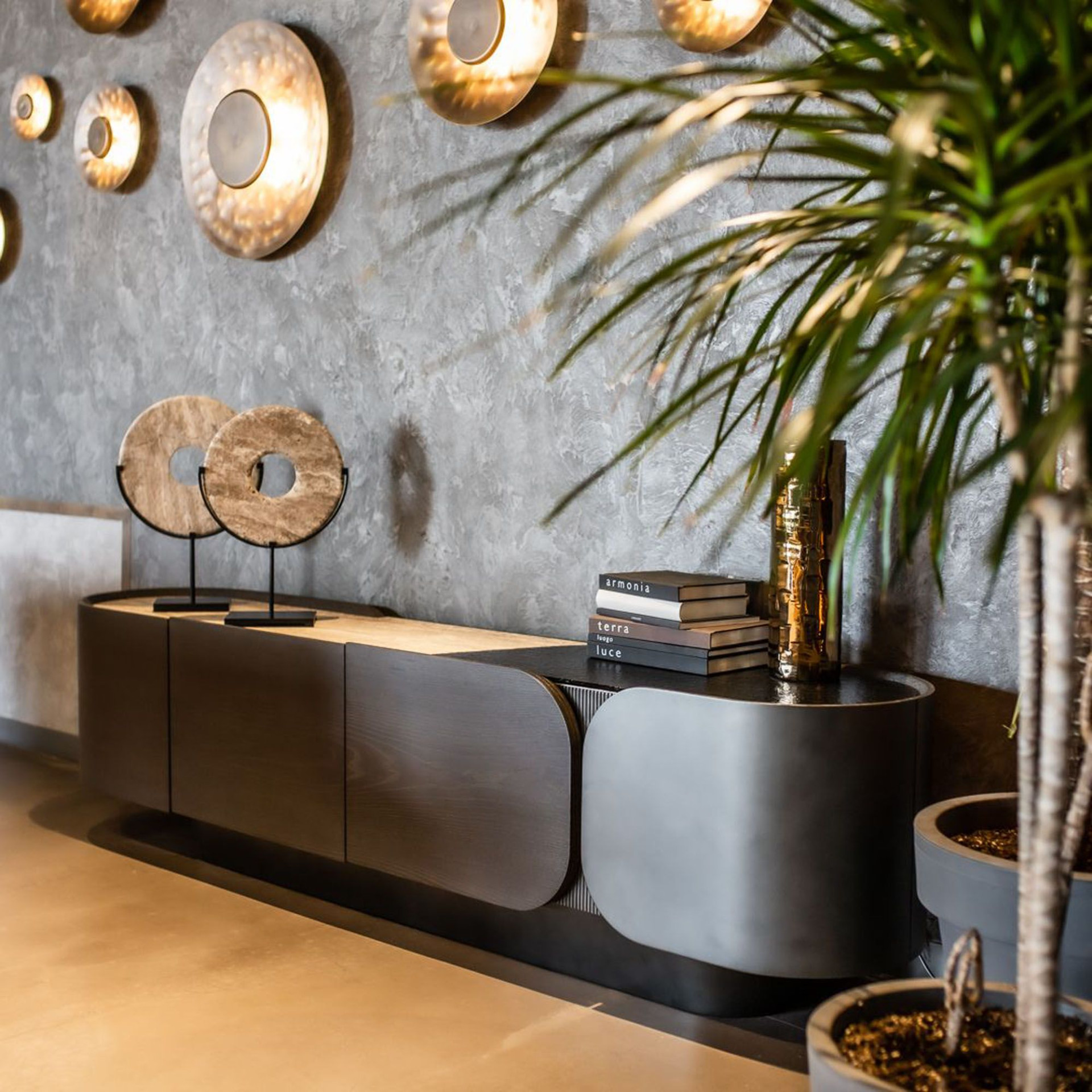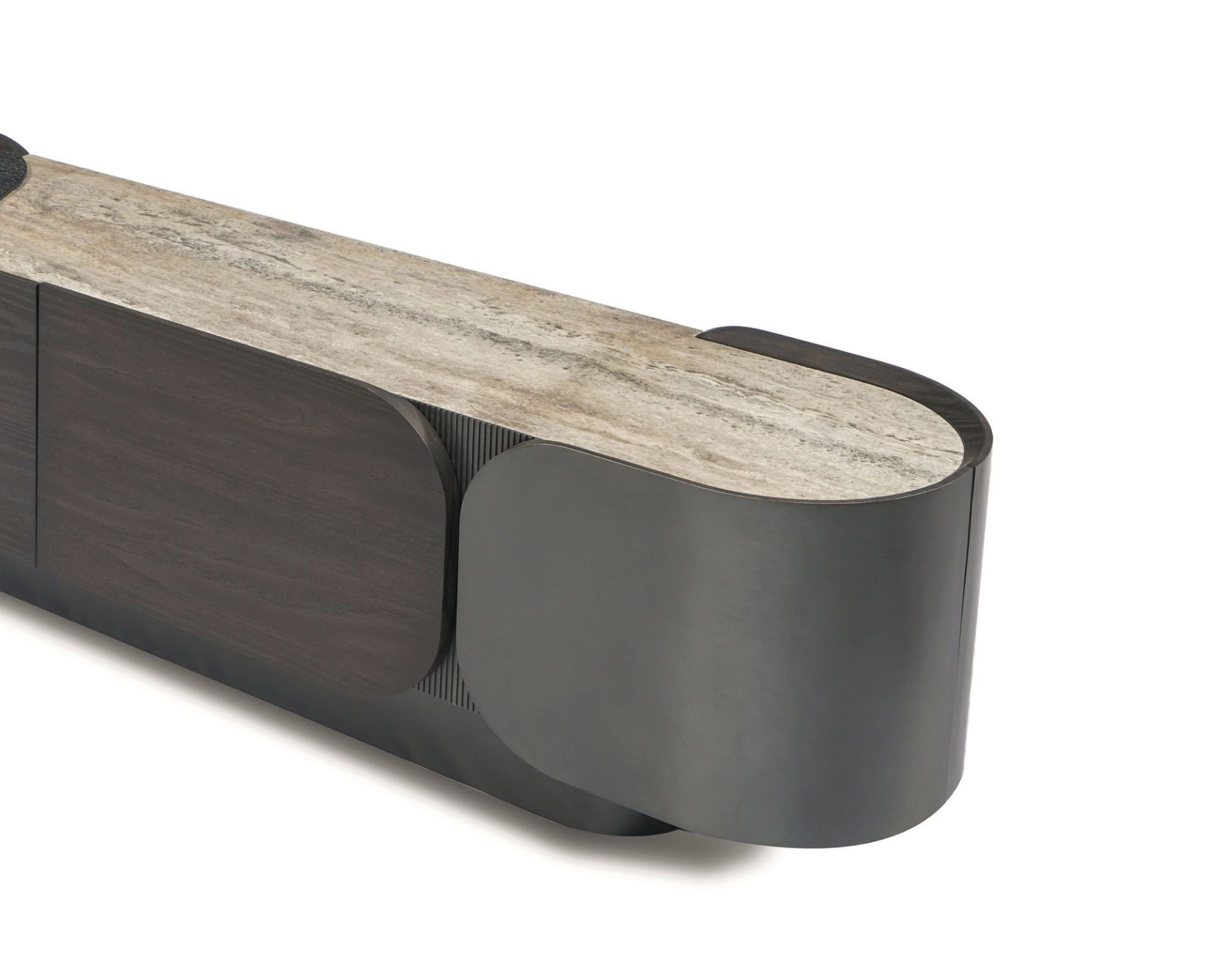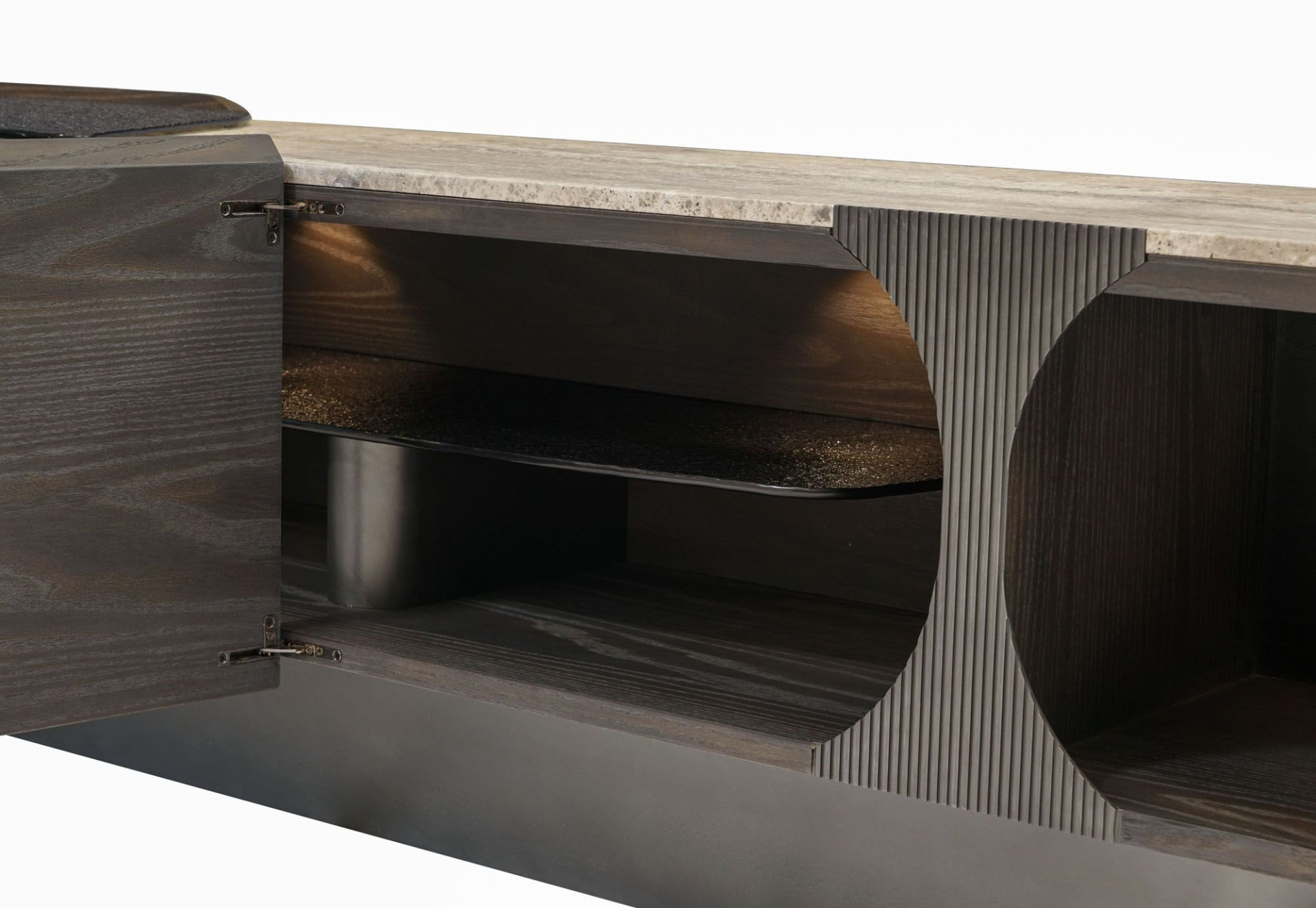 Zarafet ve çekiciliğin tanımı bir evrim içindedir. Koyu boyalı dişbudak, füzyon cam ve traverten karışımı ile Bojy Low Konsol en sofistike zevklere hitap ediyor.