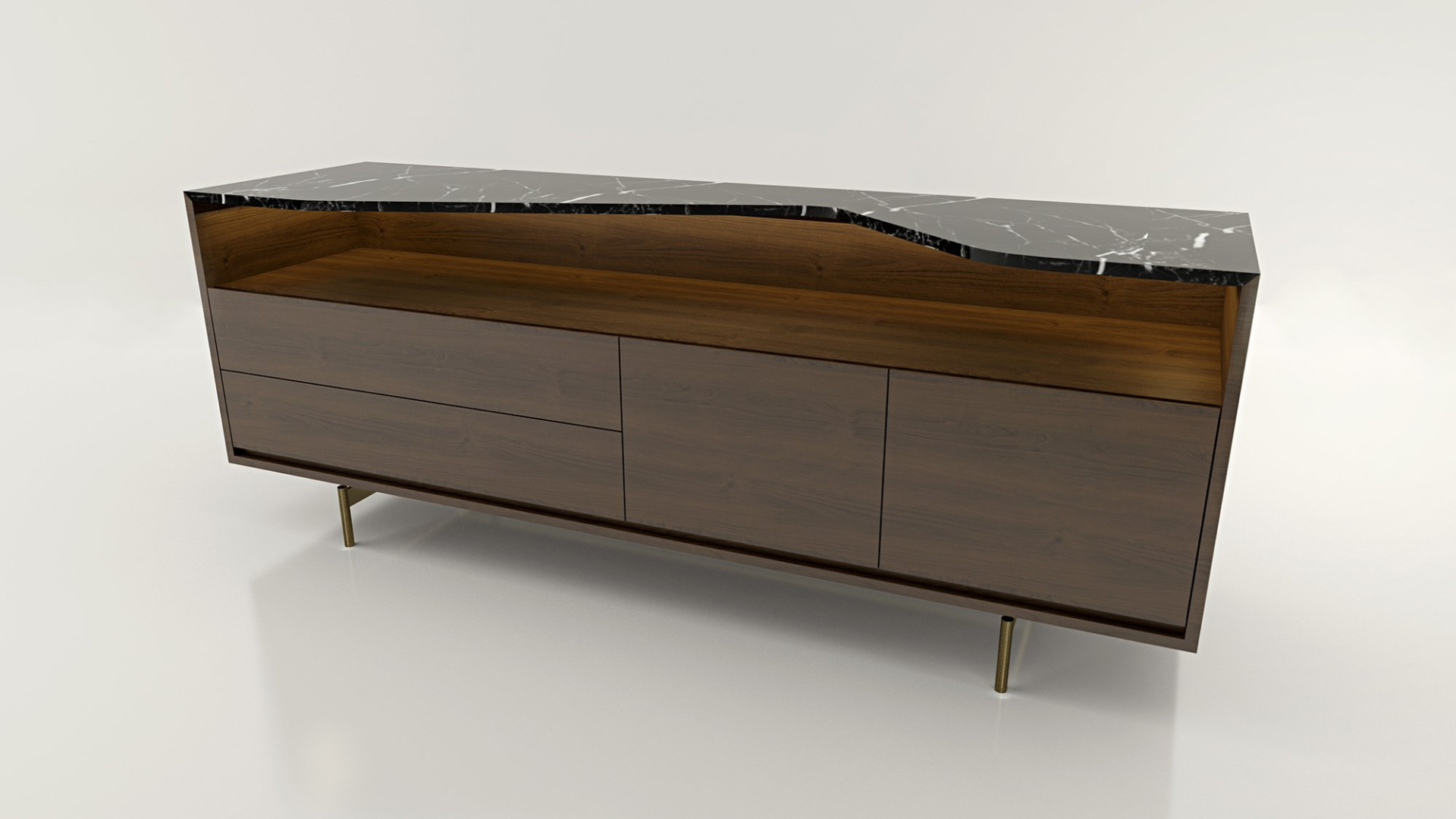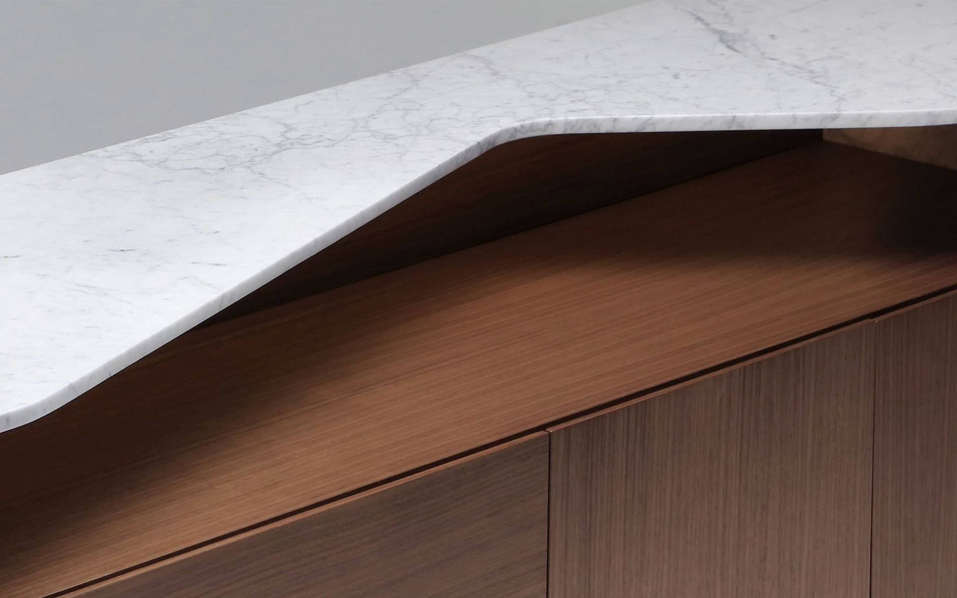 Marconato Maurizio ve Terry Zappa, tüm paha biçilmez yeteneklerini düzenli bir tasarım ve ultra işlevsel konsolun yaratılmasında ortaya koydu. Bu mobilya parçası iki malzemeyi şaşırtıcı ama aynı zamanda doğal bir şekilde birleştiriyor: ceviz ağacı ve mermer. Yumuşak ve sade masif ahşap mobilyanın bir kısmı, ince bir kesim beyaz mermer ile çevrilidir. Malzemeler harika bir şekilde karışır, her iki malzeme bir olur.