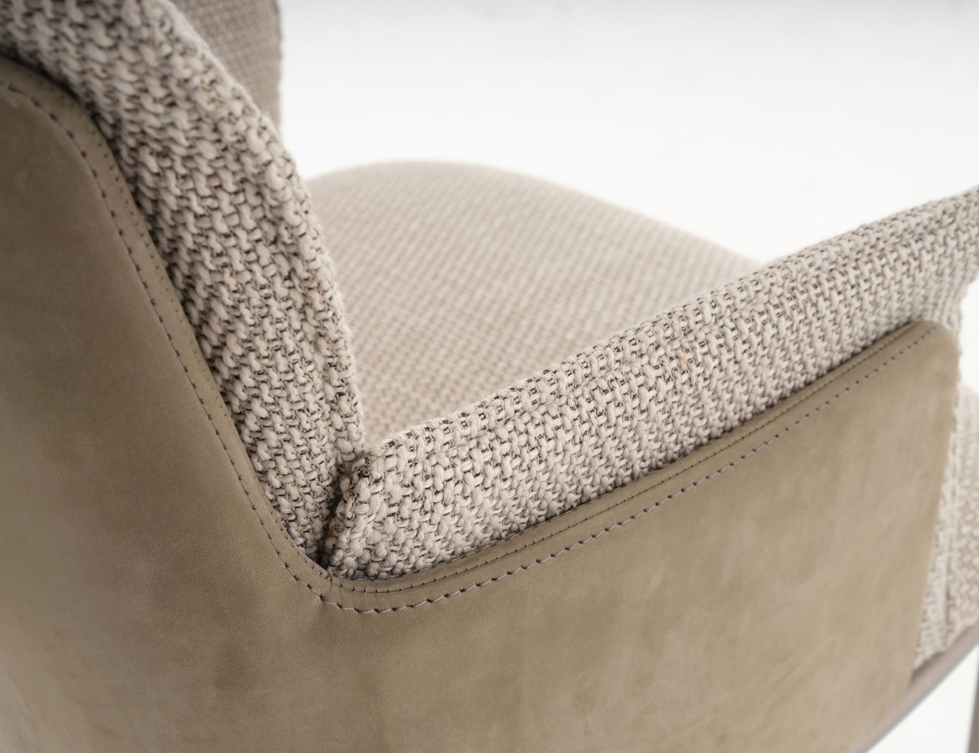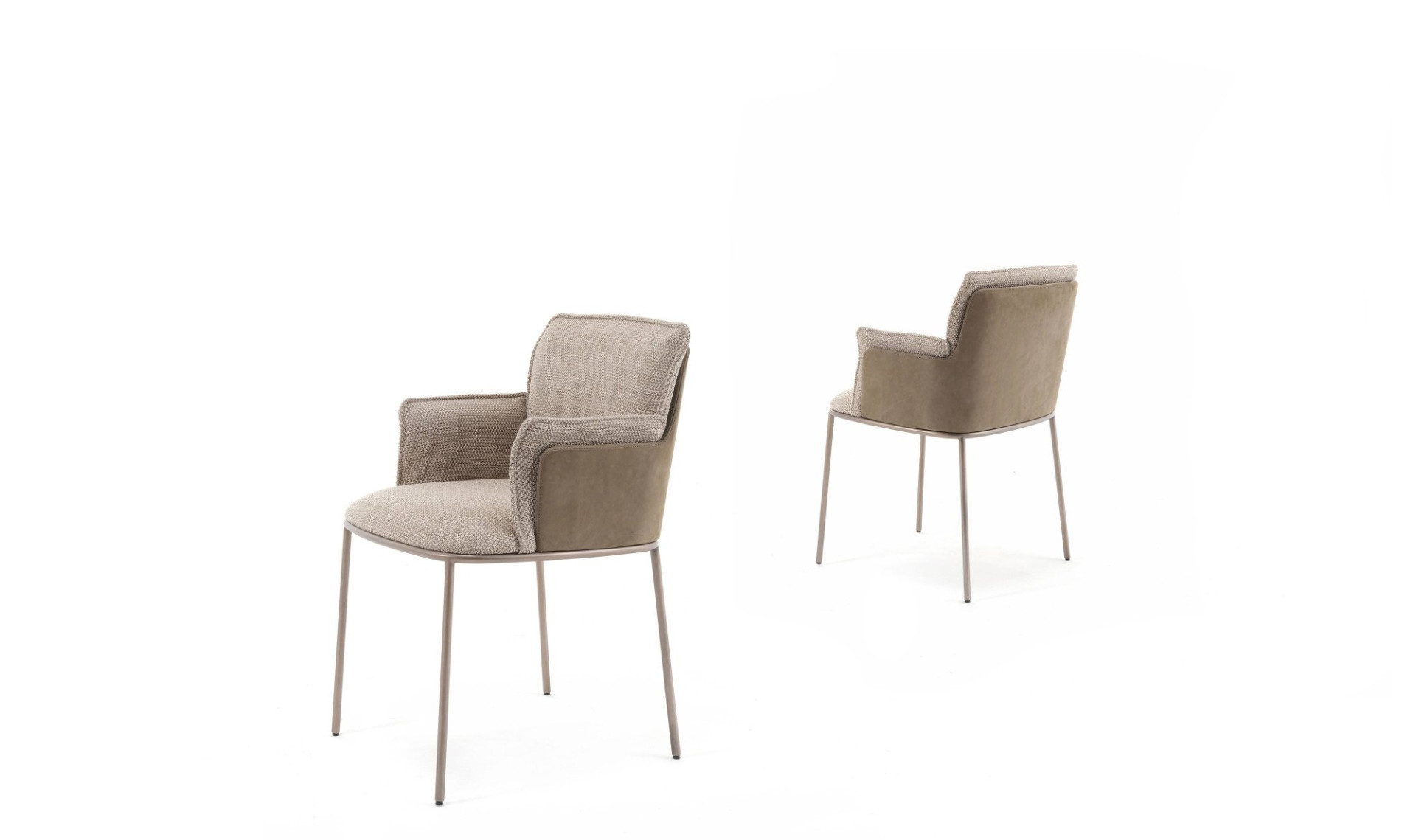 Kadınsı ve erkeksi formları ustalıkla harmanlayıp içinde barındıran Cholet Sandalye, düzenli ve formal, çağdaş modern mekânlar söz konusu olduğunda son derece provokatif, salaş ve bohem görünüme sahip bir tasarım. Bu konfor odaklı karakter, onu rahat-şık ortamlar için hemen göze çarpan bir seçenek haline getiriyor. Sırt ve kolçak modülünü oluşturan kabuksu metal destek, nubuk veya deri kaplama alternatiflerine sahip. Yumuşak dolgulu oturma fontu, ince metal çubuklar üzerinde yükseliyor. Tasarım yaklaşımı açısından ele alındığında Cholet Sandalye, yumuşak ve sert, organik ve köşeli formlar arasındaki sonsuz mücadelenin arabulucusu konumunda. Zıt kavramlar bu tasarımın bünyesinde savaşmayı bırakıp adeta birbirlerine destek olmayı öğreniyorlar. Ürün, sağlam metal kabuğun dışına taşan dolgulu minderler sayesinde son derece davetkâr bir karaktere bürünüyor. Kumaş, deri, nubuk ve metalde renk seçenekleri mevcut. Yoğunlukla ev-ofis ve yemek odalarında tercih edilen Cholet Sandalye, konut ve otel projelerine mükemmel uyum sağlıyor.