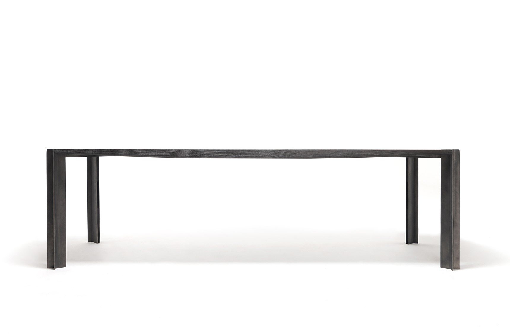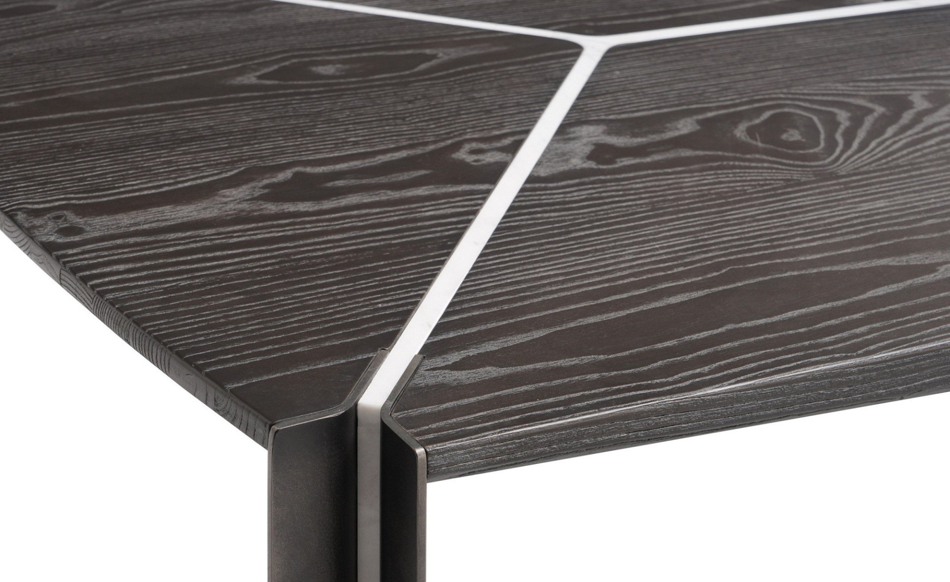 Minimalist ancak ayakları yere basan, lüks bir tasarım olan Foil Masa, Le Corbusier'in Ronchamp Şapeli'ne ince göndermeler barındıran zarif bir mobilya. Uzaktan 10 kişilik, dört ayaklı sıradan bir masa gibi görünen ürün, yakından bakıldığında, incelikli işçilikle bir araya getirilmiş üç farklı malzemenin; kumlanmış masif ahşap, mermer ve metalin kusursuz birlikteliğini ortaya koyuyor. Mermer şeritlerle vurgulanan kırlangıç kuyruğu formundaki metal ayaklar, ahşap tablanın altına gizlenmiş desteğe bağlanıp, masayı bir arada tutuyor. Ayaklardaki mermer şerit detayı tablanın ahşap parçaları arasındaki derzlere de yerleşiyor. Ürüne önden bakıldığında göze çarpan, ortasına hafif bombe verilmiş masa tablası, Ronchamp Şapeli'nin kıvrımlarından ilham alıyor. Tablanın kemerli uçları ise, benzer bir tasarım kararını gözler önüne seriyor.