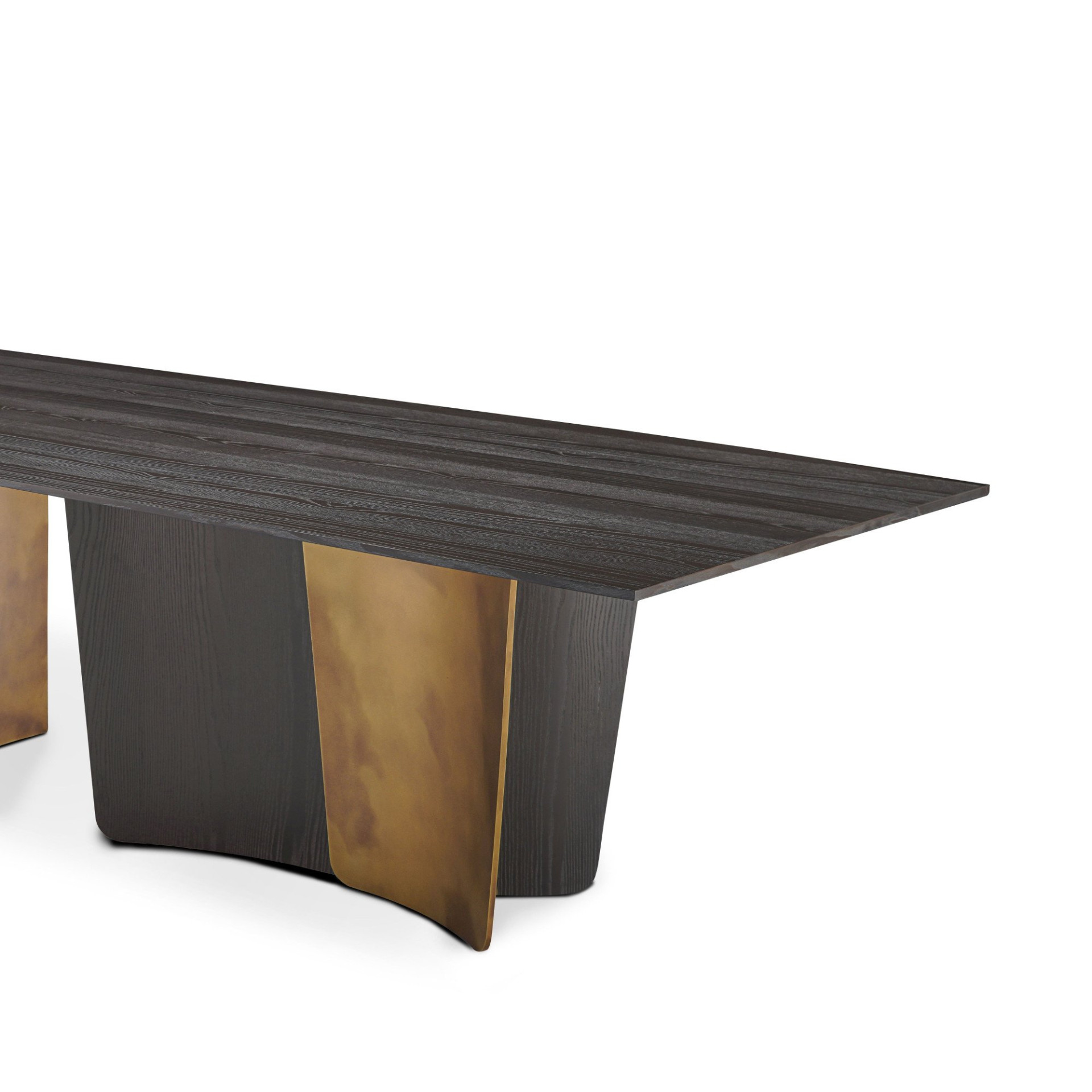 Leaf Masa, tüm zarafetini ve özelliğini metal levhaların ve tabanın masif ahşabının oyununda ortaya koymaktadır.