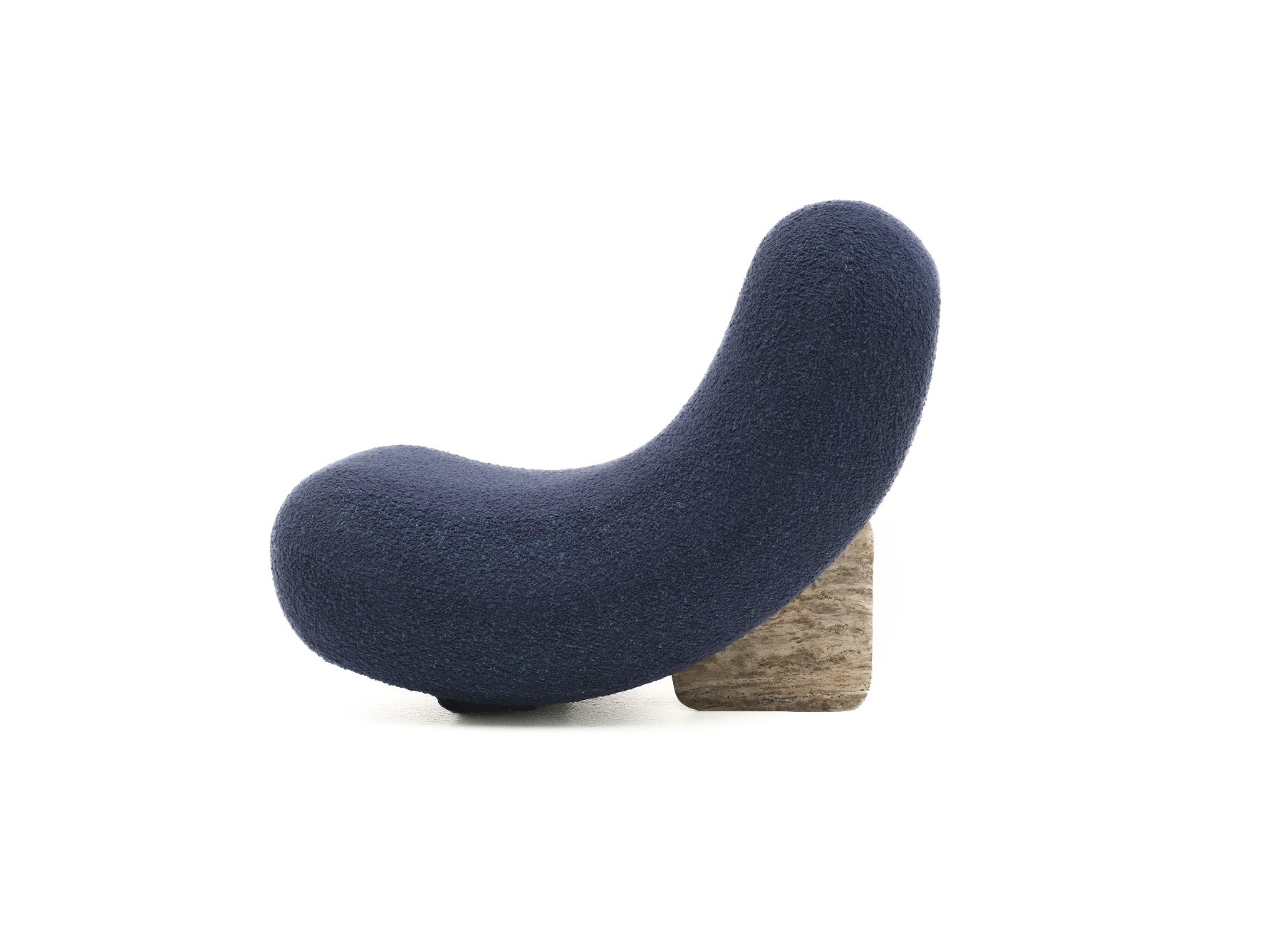 Nami Berjer, harekette yakalanmış bir duraklama hissi verir; kusursuz bir uyum içinde. Kumaşı yumuşak bir kıvrımla akarak hafiflik duygusu sunar. Traverten ayaklarla sabitlenen yapısı, konfor ile sanatı dengeler ve hem dinlenmeye hem de hayranlığa davet eder.