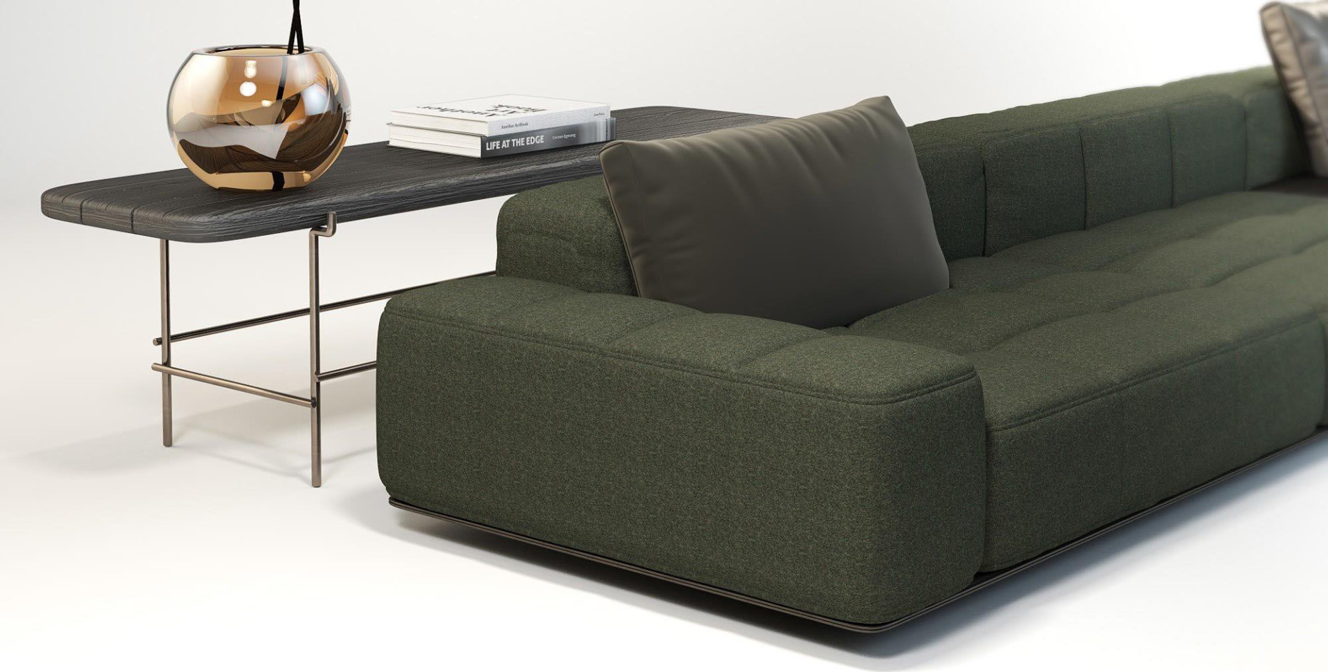 Zen minimalizminin kodlarıyla şekillenen Soho Dresuar, form ve duruş açısından aynı koleksiyonun sehpalarıyla benzeşen özelliklere sahip. Dresuarın tek parça masif ahşap tablası, Soho Sehpalar ile aynı ham, kumlanmış yüzey, eğimli kenarlar ve renk seçeneklerine sahip, ancak kısa, dolgun masif ahşap ayaklar yerine ince metal çubuklarla destekleniyor. Dresuar, bağımsız bir ürün olarak kullanılmanın yanı sıra oturma grubunun arkasına serbest bir modül olarak da eklenebiliyor. Soho Koltuk’un standart oturma modülünün sırtıyla hizalanan dresuar, koleksiyonun batılı ve doğulu öğelerini bir arada barındırmasıyla öne çıkan sade, minimal bir tasarım.